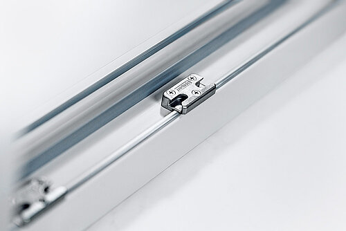 Der Roto NX Baukasten umfasst zahlreiche Bauteile für mehr Komfort rund um Fenster und Tür. Die NX Feststellschere sichert einen Flügel gegen ungewolltes Zu- oder Aufschlagen z. B. bei Zugluft. Sie ist einfach auf der normalen Fertigungslinie zu montieren.