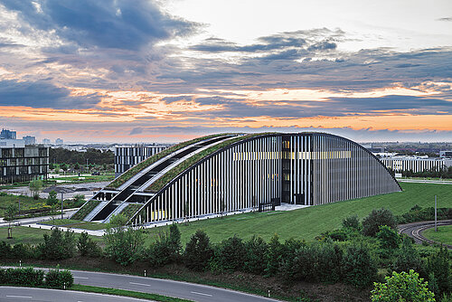 Am 28. September 2024 wurde der Innovationsbogen Augsburg offiziell eingeweiht. Für natürliches Licht in allen Büroräumen des Gebäudes sorgen neben vielen raumhohen Festverglasungen auch rund 400 Fenster im Format 1.100 x 2.600 mm. Sie sind mit einem verdeckten Drehbeschlag der Roto Aluvision ausgerüstet.
