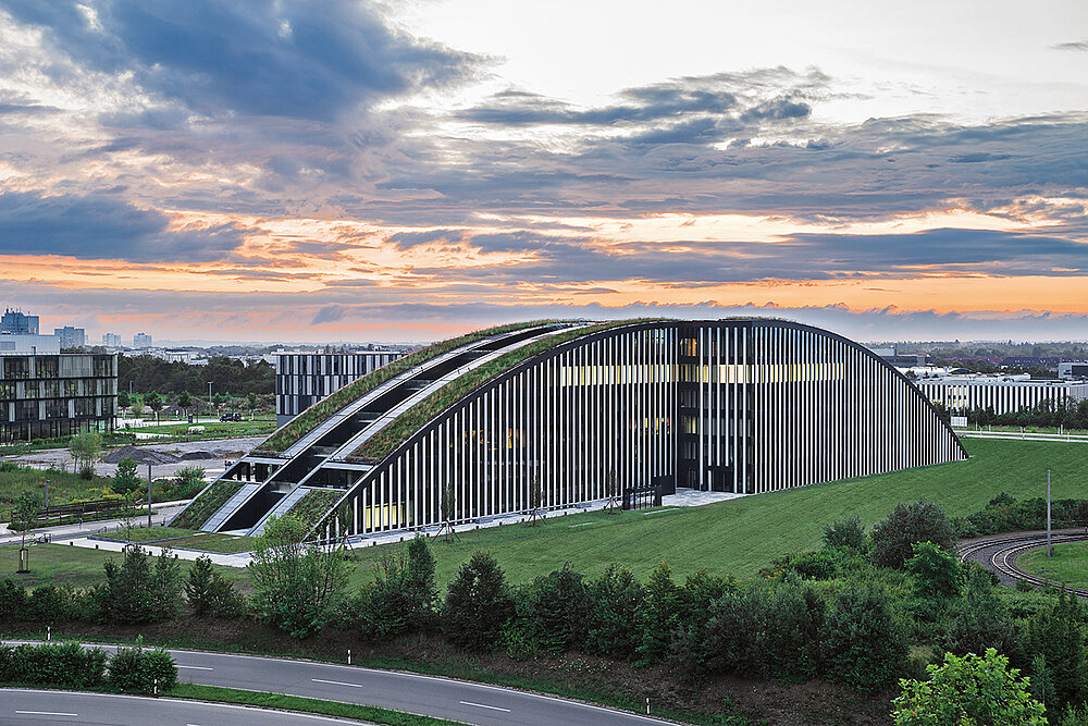 Das 147 m lange und bis zu 23,5 m hohe Gebäude nach dem Entwurf von Hadi Teherani Architects besteht aus zwei bogenförmigen Bauteilen. Dr. Christian Bergmann aus dem Architektenteam erläutert: „Wir nehmen die Landschaft auf und führen sie einmal über das Dach. Aus diesem einfachen Gedanken ist eine bogenförmige Silhouette entstanden, welche zukünftig als Landmarke für den gesamten Innovationscampus fungieren wird.“