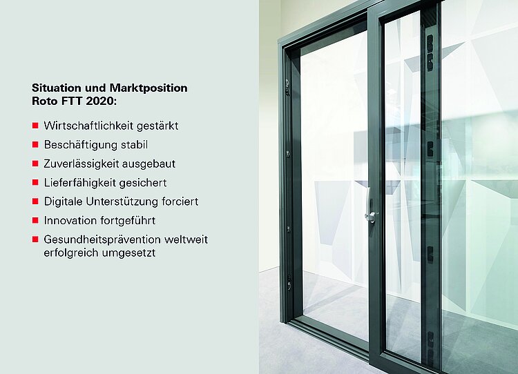 Roto Frank Fenster- und Türtechnologie: 2020 Herausforderungen gemeistert / Stabilität im Corona-Jahr / Per saldo weltweit gut behauptet / Differenzierte Beschlagmärkte / Gefestigte Position / Erfolgreiches Gesundheitskonzept / Global voll lieferfähig / Digitale Offensive / Wirtschaftliche Stärke / Investitionen in Innovationen / Schiebesystem „Roto Patio Inowa“ als exemplarischer Leistungsbeweis