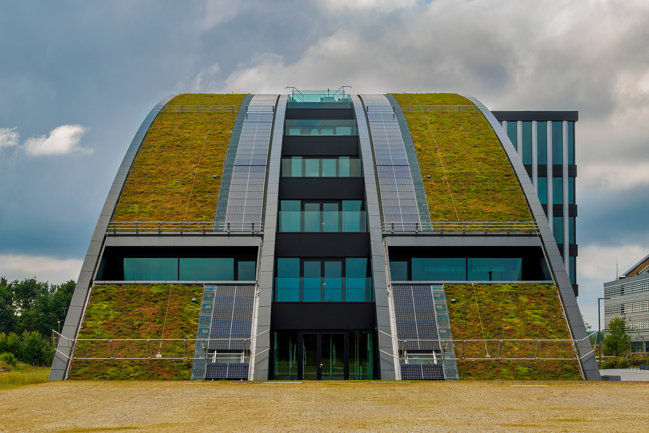 Nachhaltige Bausteine wie auf dem Dach montierte Photovoltaik-Anlagen, Klimatisierung durch spezielle Heiz- und Kühlsegel, Fernwärme, Nutzung der Kühlenergie des Grundwassers sowie großflächige Dachbegrünung sind zentrale Bestandteile des fortschrittlichen Energiekonzepts.