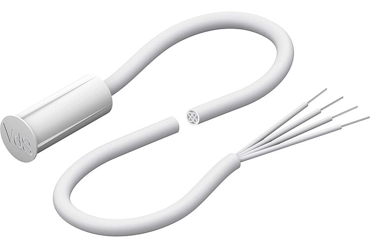 Si una ventana, puerta o puerta corredera está equipada con un elemento de contacto MVS B, al abrirse se interrumpirá el campo magnético, transmitiendo una señal al sistema de alarma. Si éste está activado, emitirá un aviso.