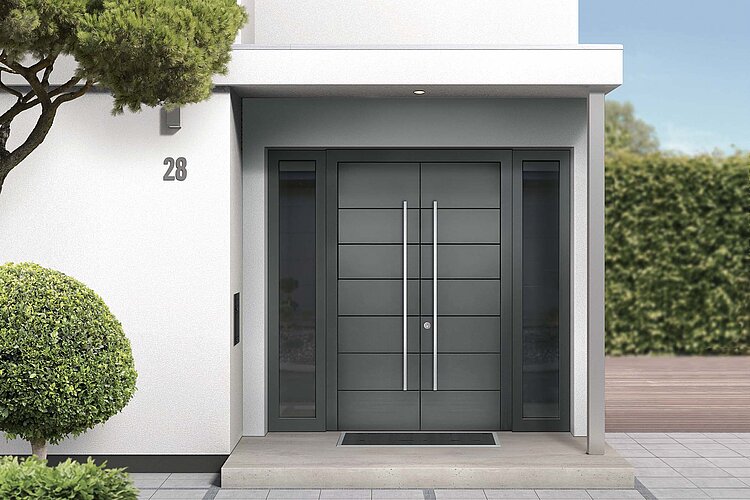 Muchos fabricantes prestigiosos de puertas de aluminio trabajan con la bisagra cubierta Roto Solid C. El ajuste rápido en altura a través de un punto central de regulación es especialmente apreciado. La versión más reciente del módulo de ajuste en altura destaca por una integración visual todavía mejor, así como su procesamiento y montaje simplificado.