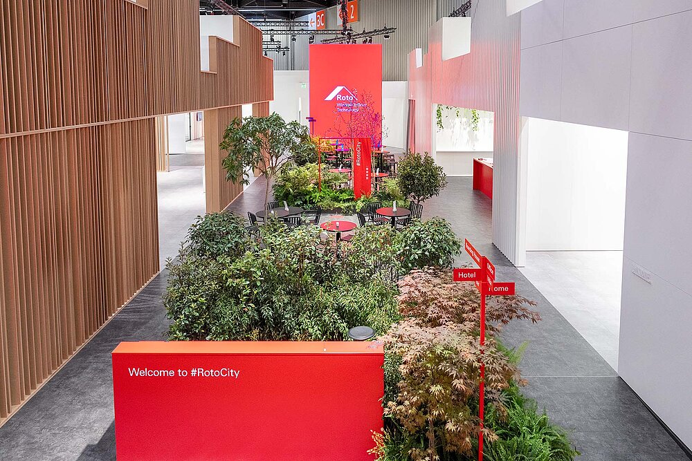 Visitors to the “Roto City” saw how hardware, locks, thresholds, seals and glazing technology could be used in a variety of applications on our stand area of around 1200 square metres. They had the opportunity to experience at first hand the solutions in windows, sliding elements and main doors made from any frame material for private homes as well as for public buildings. A green park at the heart of the “Roto City” was an inviting place to spend some time. The virtual “Roto City” (available at ftt.roto-frank.com/en/roto-city) offers anyone who wasn’t able to attend the trade show in person access to all of the product themes that were presented, as part of an individual guided tour from a Roto adviser, at any time.
