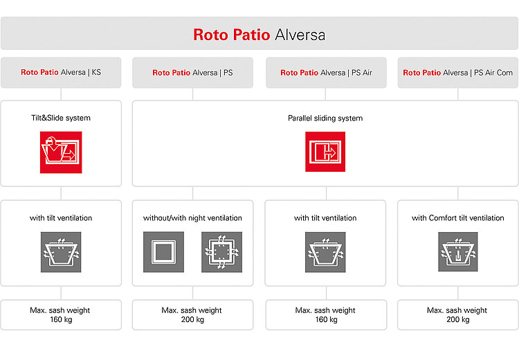 Quattro varianti in un unico sistema scorrevole parallelo/ad anta ribalta scorrevole / Minimo sforzo: molti pezzi identici, lavorazione rapida / Microventilazione: invisibile e con protezione RC 2 / Comodità senza compromessi / Ferramenta e guarnizione abbinate in modo ottimale
