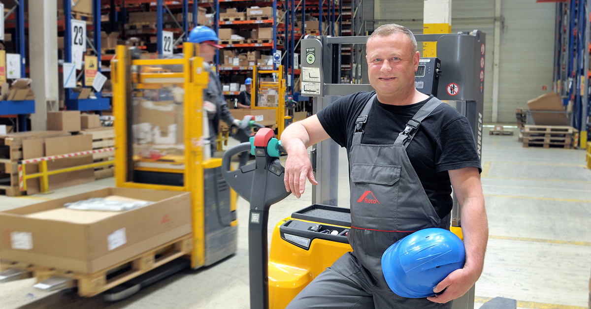 „Pracuję w magazynie Roto od samego początku czyli od 1998 roku i jestem z tego dumny. Zaczynałem od najprostyszych zadań, a dziś odpowiadam za przyjmowanie, sprawdzanie i składowanie towarów. Dbam o organizację, by wszystko było dostępne i zabezpieczone. Od ponad 25 lat uczestniczę w rozwoju firmy, co daje mi też osobistą satysfakcję" – mówi Michał Skudlarski.