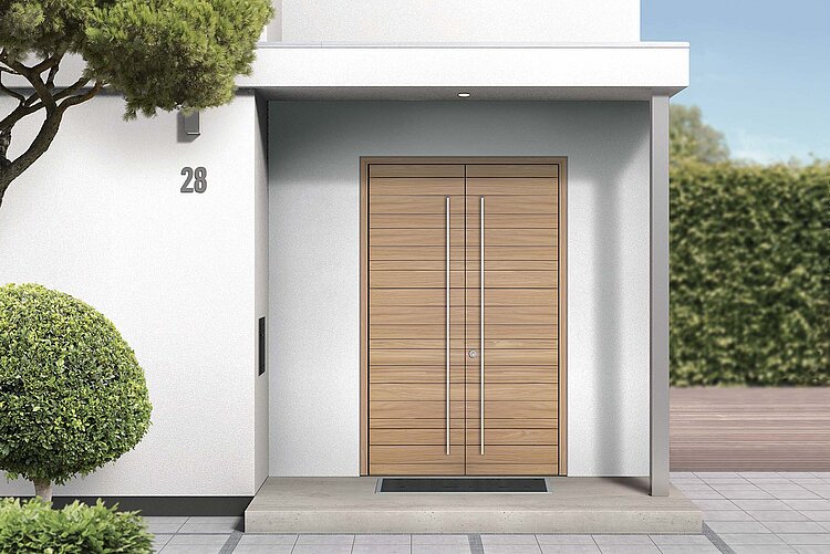 Para puertas principales de doble hoja de madera y PVC / Compatible con todos los sistemas de cierre de la gama Roto Safe con enganches habituales / Apto para RC 2 y certificación SKG** / Alta seguridad de funcionamiento / Fabricación económica