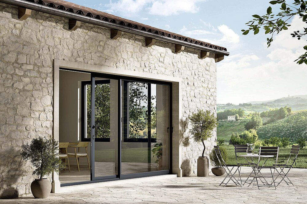 Un aspect important pour les régions au climat variable : « Patio Inline | SR » bénéficie du plus haut niveau de protection anticorrosion conformément à la norme DIN EN 13126. Tous les composants de la quincaillerie répondent aux exigences de la classe 5. Le système a été testé sur plus de 20 000 cycles conformément à la classe de performance fonctionnelle à long terme H3.