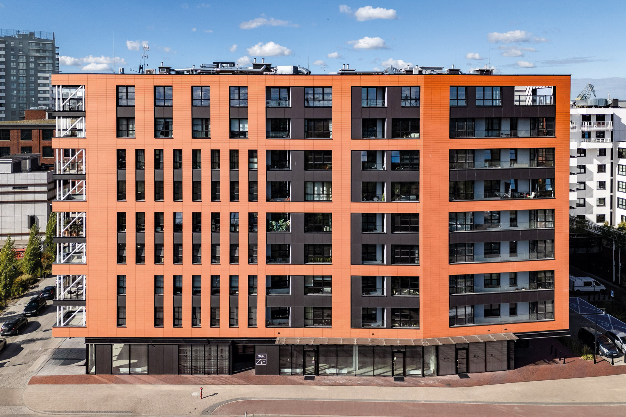 DOKI is a multifunctional building complex right next to the former shipyards in the heart of Gdansk, combining residential space (DOKI Living) and a hotel and catering area (Montownia).