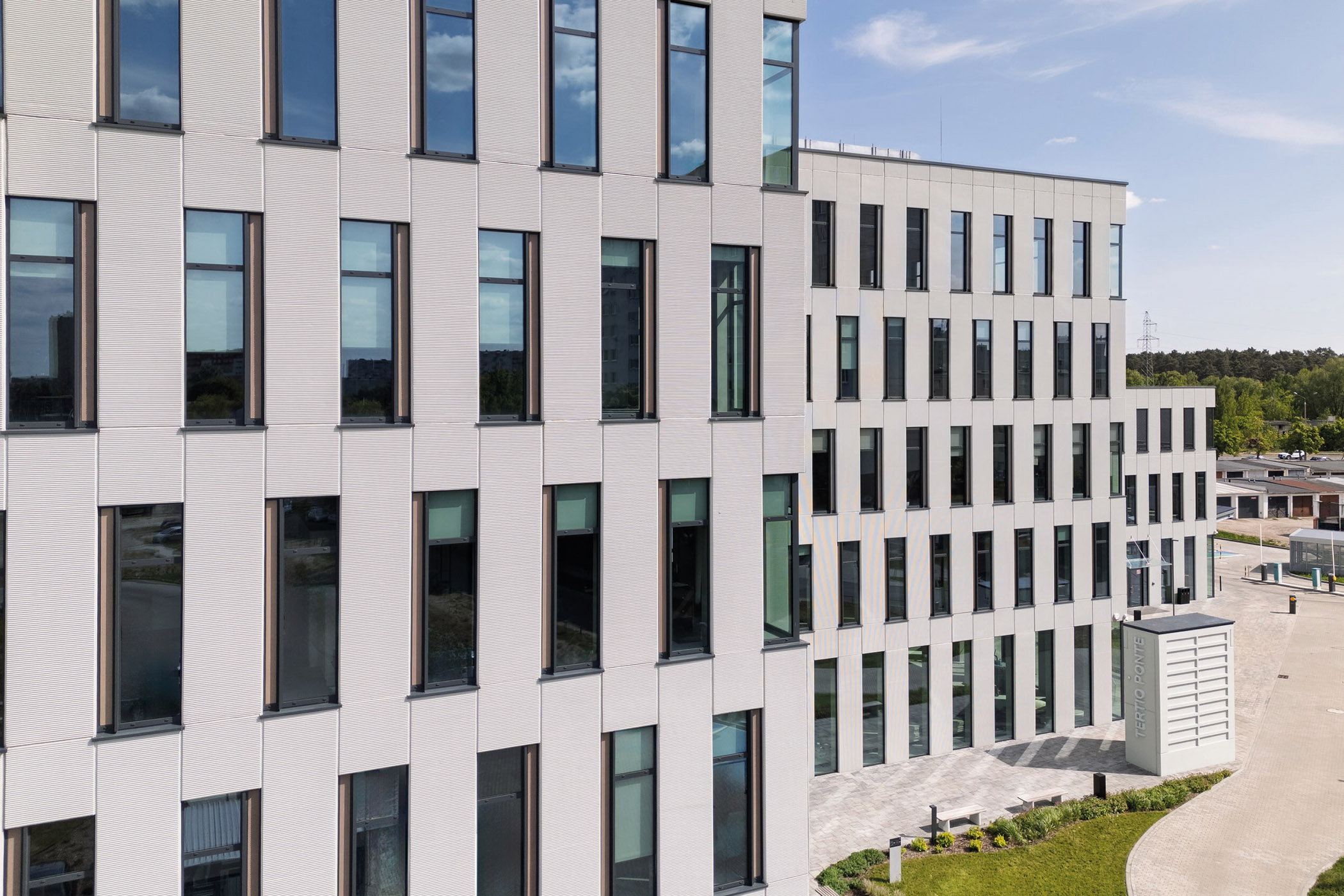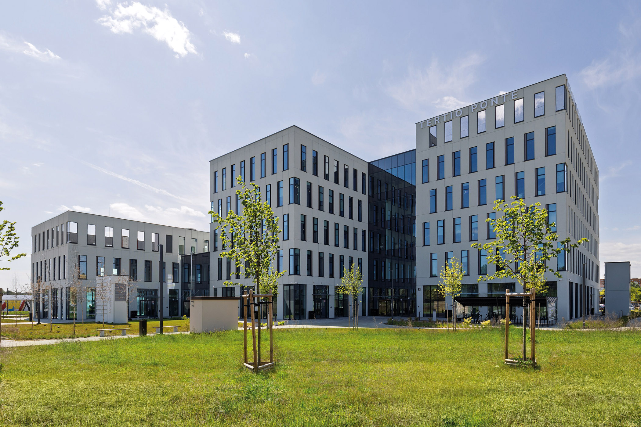The Tertio Ponte building consists of three interconnected two- and five-storey modules and a basement. The building has a usable floor space of over 11,000 m², of which approximately 5,000 m² is office space.