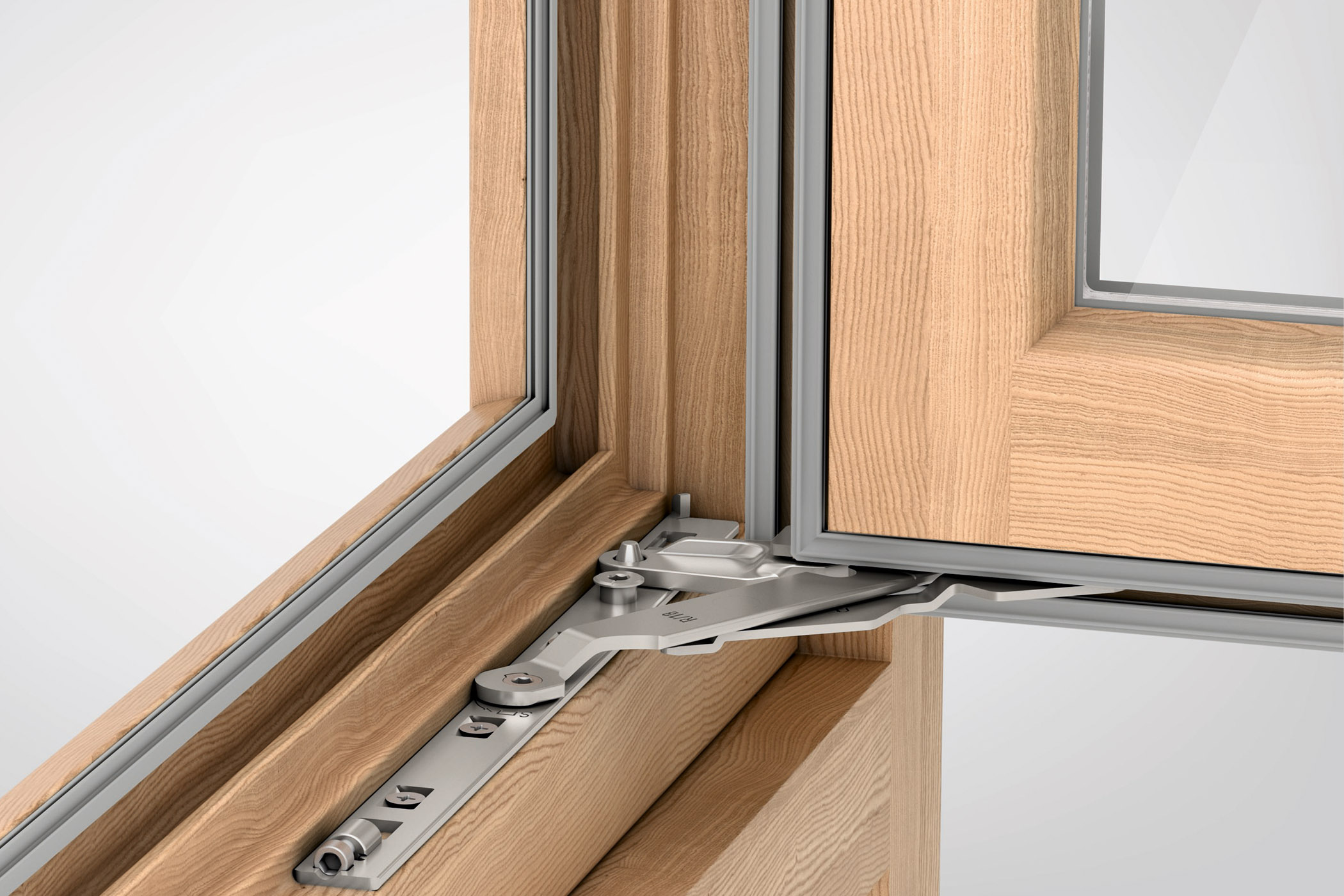 - High level of operating convenience: staged taper action (s-shaped link) of the integrated night ventilation harmoniously distributes the necessary operating force throughout the closing process. This effect is even more pronounced in large windows.
